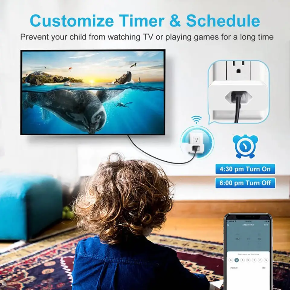 Usando seu smartphone ou tablet controla remotamente o plugue de energia wifi inteligente pelo aplicativo gratuito Smart Life e eWeLink de qualquer lugar a qualquer momento. Facilmente para controlar seus aparelhos domésticos.