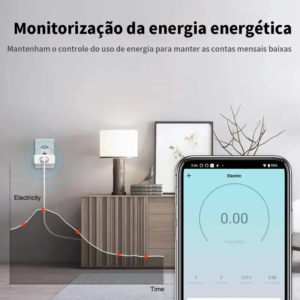 • Monitoramento de Energia :Este plugue inteligente permite monitorar o consumo de energia, ajudando a otimizar a utilização da energia e a economizar dinheiro.