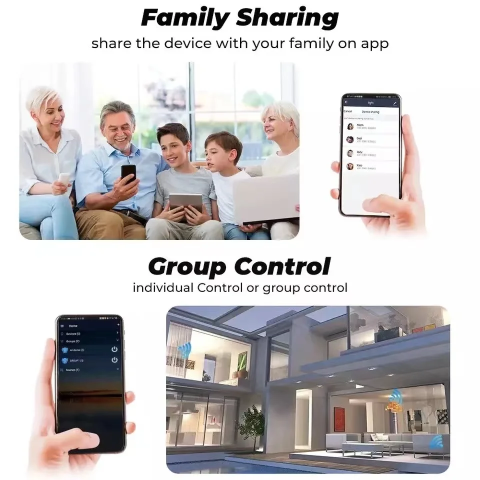 Um toque para compartilhar o plugue inteligente com seu membro da família pelo aplicativo para eliminar processos de configuração extras. A conta principal tem as permissões exclusivas, um clique para compartilhar as permissões com toda a família. deixe a família desfrutar da diversão da vida inteligente!